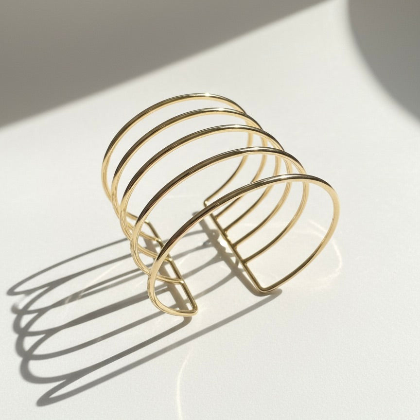 O Bracelete Aurora é a definição de presença e sofisticação. Com design moderno em linhas paralelas e estrutura aberta que envolve o pulso com leveza, ele cria um visual imponente sem perder a delicadeza. Produzido em metal de alta qualidade com banho dourado espelhado, seu brilho elegante transforma qualquer look — do casual ao noite — em uma composição estilosa e única. Perfeito para usar sozinho como peça de destaque ou combinado com outros acessórios para um efeito ainda mais fashion.