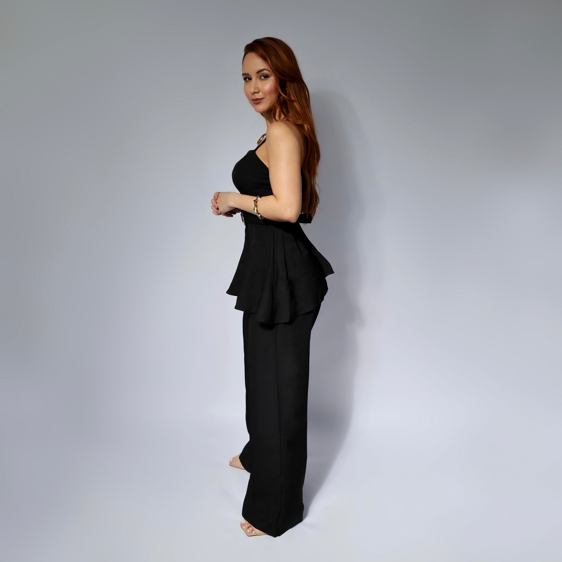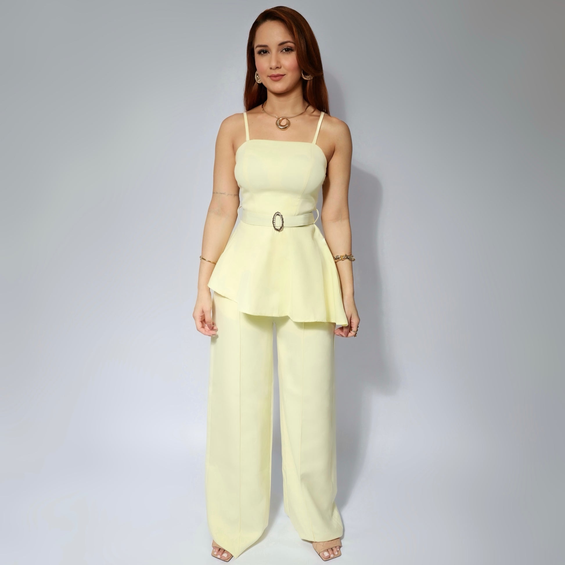 Blusa de alcinha, bojo estruturado, decote elegante e modelagem moderna com uma lateral levemente alongada. O elástico nas costas proporciona ajuste perfeito ao corpo, enquanto o cinto forrado com fivela adiciona um toque refinado ao visual.
