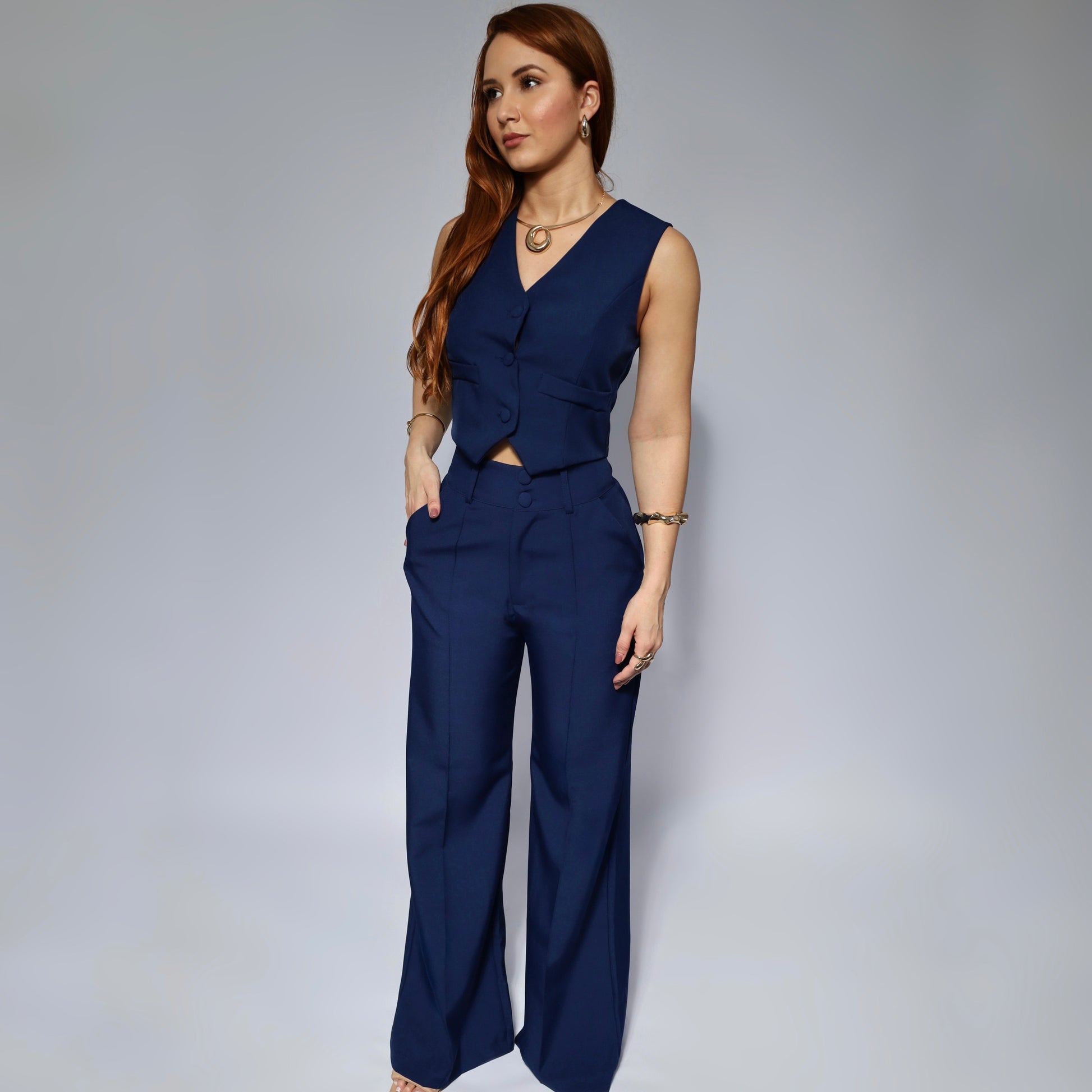 Também funciona separado: combine o colete com jeans para um look casual chic ou use a calça com camisa ou cropped para produções versáteis do dia à noite.